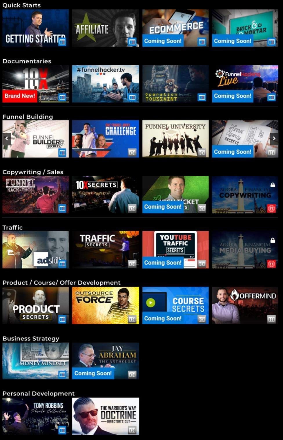 FunnelFlix will be part of the new ClickFunnels Platinum Membership priced at $297/m. For this price Russell gives you access to all of prior ClickFunnels training’s, some of Tony Robbins training’s and also some of Garrett Whites material from Warrior.