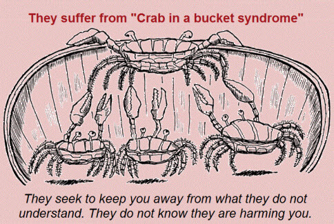 Some crabs are not ready to face this truth. They would rather partake in the dogpile and remain comfortably miserable.