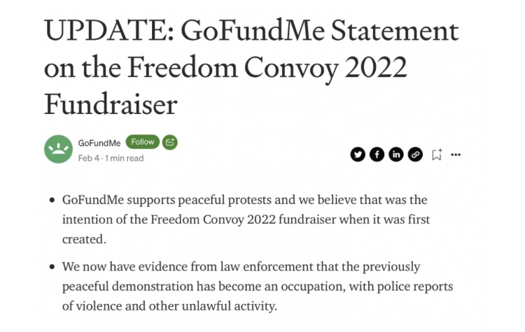 Official Statement: https://medium.com/gofundme-stories/update-gofundme-statement-on-the-freedom-convoy-2022-fundraiser-4ca7e9714e82