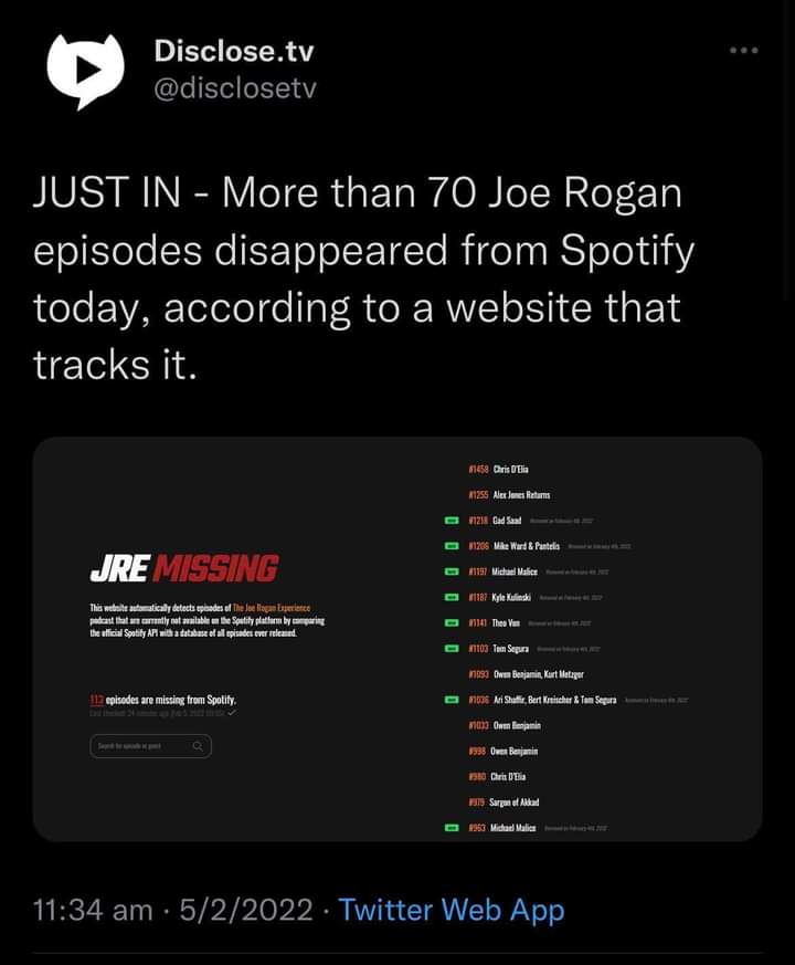 Spotify released a statement indicating that they are only a distributor not a publisher. This sounded hopeful; however, Spotify seems to be capitulating to recent demands against Rogans videos.