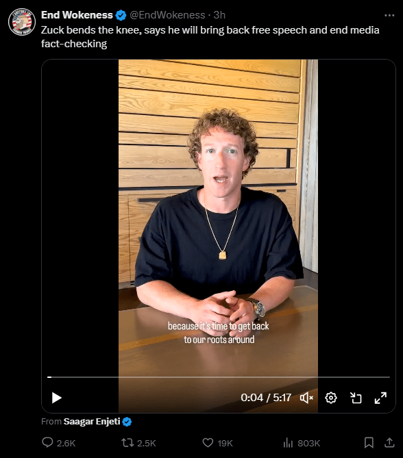 January 7, 2025 mrremsdaily Zuckerberg to Incorporate Community Notes to Facebook, Commits to Free Speech About time… Share this: Click to share on X (Opens in new window) X Click to share on Facebook (Opens in new window) Facebook Click to share on LinkedIn (Opens in new window) LinkedIn Like Loading... Related