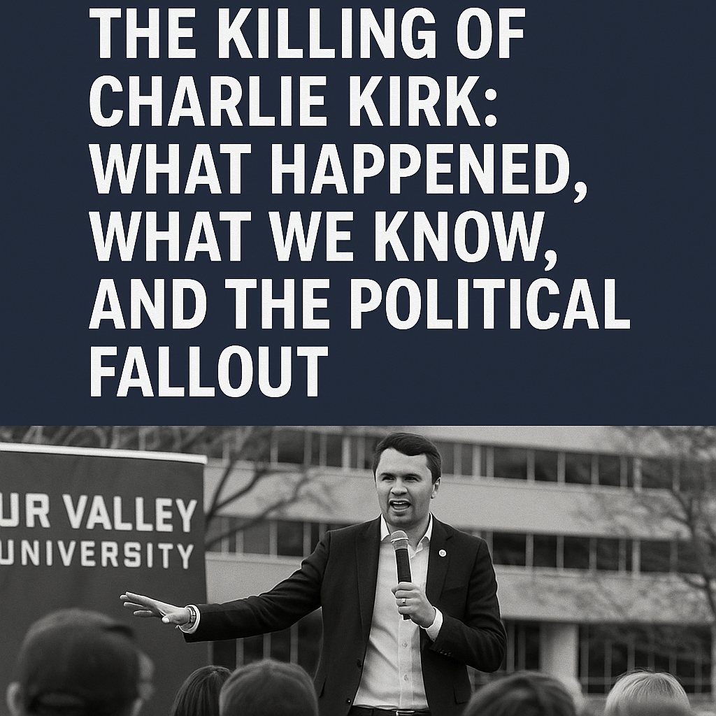 On September 10, 2025, Charlie Kirk, the conservative activist and founder of Turning Point USA, was shot dead while speaking outdoors at a campus event at Utah Valley University in Orem, Utah.